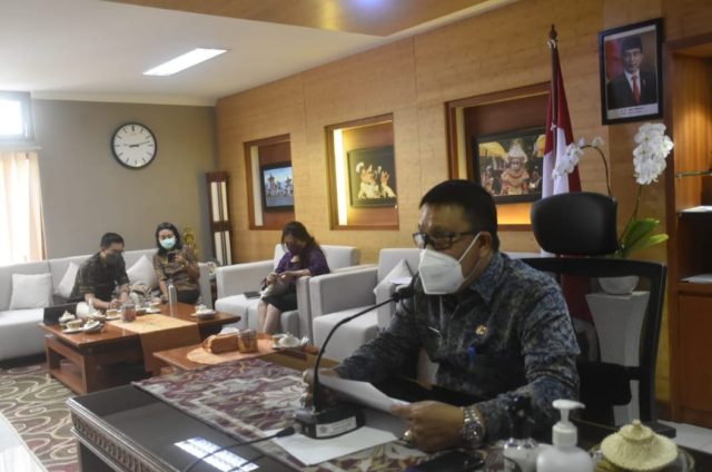 Sekretaris Daerah Kota Denpasar, AAN Rai Iswara menjadi narasumber dalam wawancara virtual KKL Study Wilhan Pasis Dikreg LIX Seskoad TA 2020 yang bertempat di Gedung Graha Sewaka Dharma, Lumintang Denpasar, Jumat (28/8/2020).