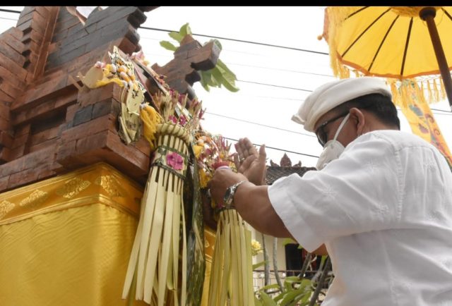 Sekda Kota Denpasar, AAN Rai Iswara turut mengikuti sejumlah rangkaian upacara yakni Mendem Pedagingan di Pelinggih setempat yang sudah rampung dibangun.