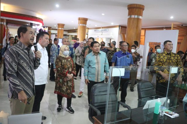 MPP BADUNG – Kepala DPMPTSP Agus Aryawan mendampingi Sekjen Kemendagri, Dr. H. Suhajar Diantoro bersama rombongan dari Kabupaten Konawe, Provinsi Sulawesi Tenggara mengunjungi MPP Kabupaten Badung, Sabtu (8/10).