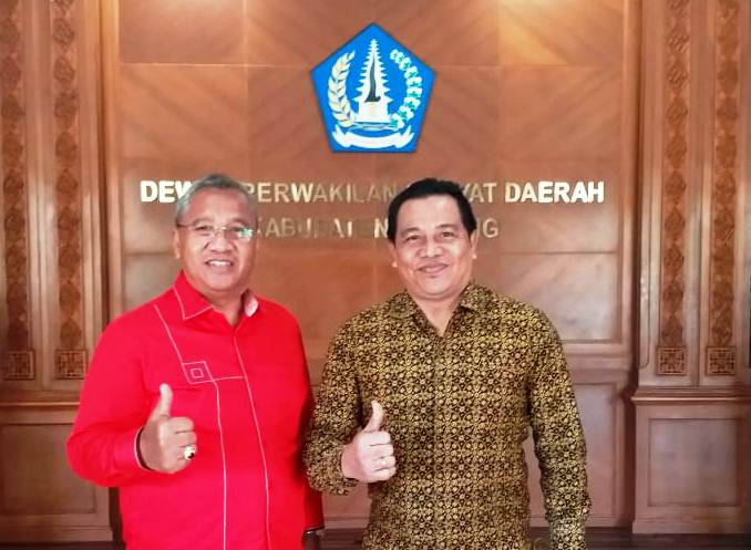 BERFOTO – Ketua DPRD Badung Putu Parwata berfoto bersama Wakil Ketua Wayan Suyasa.