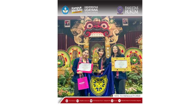 Tim mahasiswa FH Unud yang terdiri atas 3 orang, yaitu Cokorda Istri Kirana Pramesti (Ketua Tim), Kadek Ayu Maharani (Anggota Tim) dan Kadek Sandra Putri Saniamarani (Anggota Tim) menjadi Juara 1 Lomba Debat Tingkat Nasional Tahun 2023 yang diselenggarakan oleh Unit Kegiatan Mahasiswa Pasemetonan Mahasiswa Hindu Dharma (PMHD) Universitas Warmadewa dengan didampingi oleh Dosen Pembina Edward Thomas Lamury Hadjon, SH, LLM.