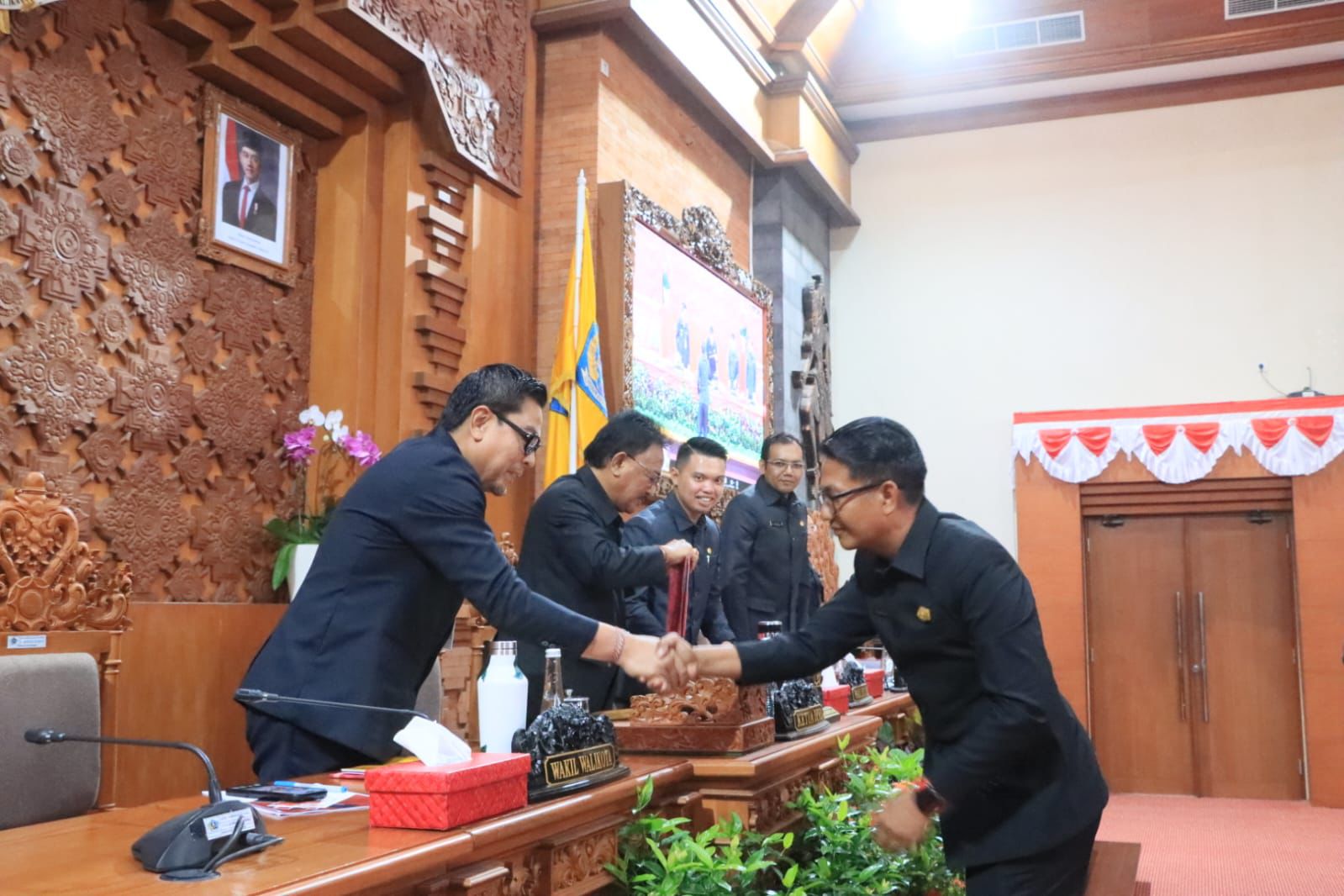 Paripurna dipimpin Ketua DPRD Denpasar I Gusti Ngurah Gede didampingi Wakil Ketua DPRD Ida Bagus Yoga Adi Putra dan Dr. I Made Oka Cahyadi Wiguna. Hadir dalam kesempatan tersebut Wakil Walikota Denpasar I Kadek Agus Arya Wibawa, Forkopimda Denpasar, serta pimpinan OPD Pemkot Denpasar.
