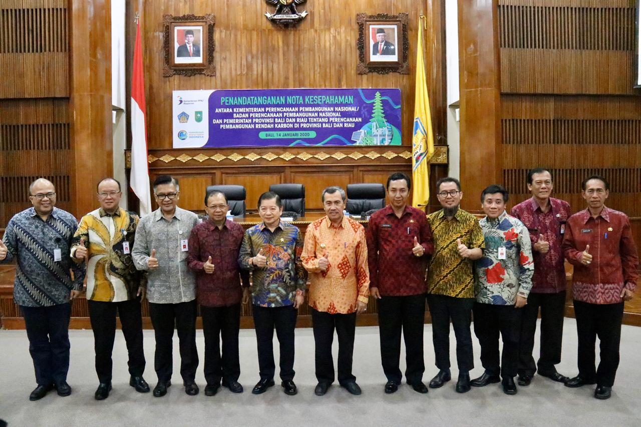 Demikian terungkap dalam sambutan Gubernur Bali Wayan Koster saat acara penandatanganan nota kesepahaman antara Kementerian Perencanaan Pembangunan Nasional / Badan Perencanaan Pembangunan Nasional (Bappenas) dengan Pemerintah Provinsi Bali dan Provinsi Riau tentang Perencanaan Pembangunan Rendah Karbon yang berlangsung di Gedung Wiswa Sabha Utama, Kantor Gubernur Bali, Denpasar pada Selasa (14/1).