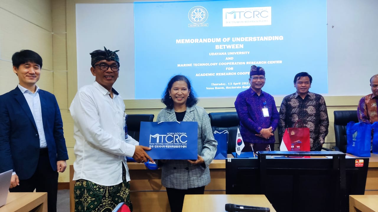 Hari ini, 13 April 2023 berlokasi di Ruang Nusa, Gedung Rektorat Unud telah dilaksanakan penandatanganan MoU (memorandum of understanding) antara Universitas Udayana dengan MTCRC. Beberapa delegasi dari MTCRC hadir di antaranya M. Firman Hidayat, Deputy Coordinating Minister for Maritime Resources; Amalyos Chan, Assistant Deputy Coordinating Minister for Maritime Resources Downstream; Firman Tri Sasongko, Senior level policy analyst; Hardino, Senior level policy analyst; Dr. Park Hansan, Korea Director of Korea-Indonesia MTCRC; Ivonne M. Radjawane Ph.D. , Indonesia Director of Korea-Indonesia MTCRC; dan Dr. Ir. Safri Burhanuddin, DEA, Chairman Advisory Board for Korea-Indonesia MTCRC