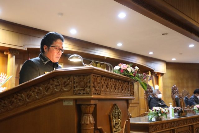 Bupati Badung Nyoman Giri Prasta menyampaikan penghargaan dan terima kasih atas kesungguhan dan kerja keras pimpinan dan anggota DPRD, sehingga pembahasan 2 dokumen penganggaran daerah dapat dilalui dalam suasana kebersamaan dan pemahaman yang sama, berdasarkan amanat regulasi yang berlaku. Hal ini ditegaskan saat mengikuti Rapat Paripurna DPRD Badung yang dipimpin oleh Ketua DPRD Putu Parwata dan Wakil Ketua I, Wayan Suyasa, dengan agenda Pengambilan Keputusan Dewan Terhadap Rancangan Kebijakan Umum APBD (KUA) Kabupaten Badung Tahun Anggaran 2022 dan Rancangan Prioritas dan Plafon Anggaran Sementara (PPAS) APBD Kabupaten Badung Tahun Anggaran 2022, di Ruang Sidang Utama Gosana Kantor DPRD Badung, Jumat (13/8).