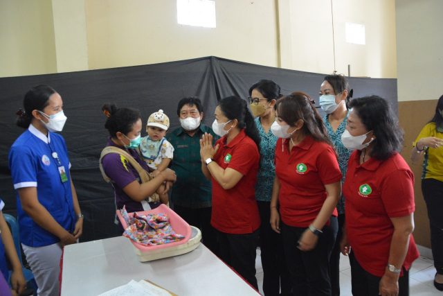 PMT – Ny. Sagung Antari Jaya Negara menyerahkan bantuan PMT dan meninjau kegiatan posyandu di Banjar Tengah Ubung, Kelurahan Ubung, Jumat (15/10/2021).