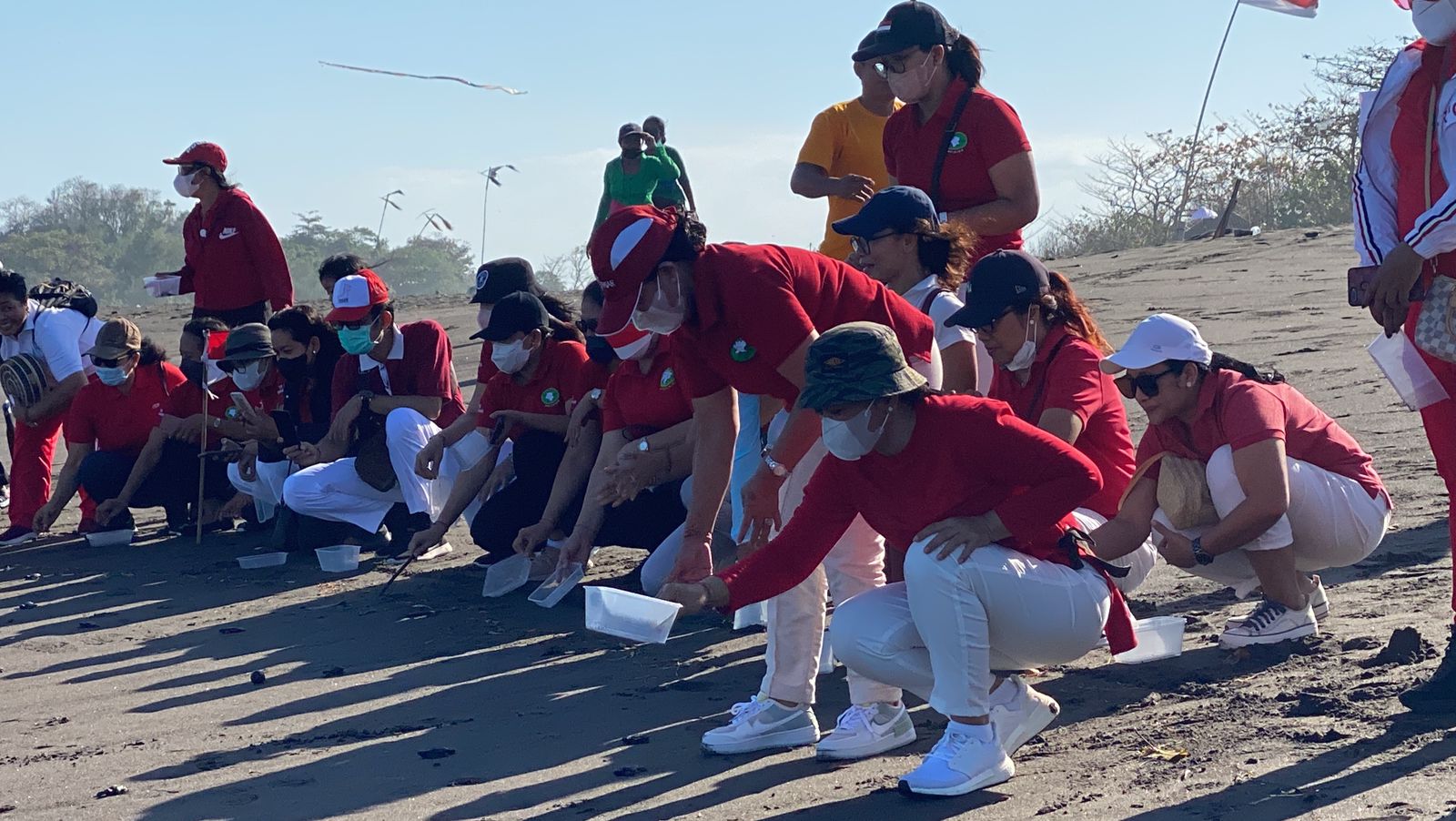 Masih dalam rangkaian peringatan HUT ke-77 RI, TP PKK Kota Denpasar dan Dharma Wanita Persatuan (DWP) Kota Denpasar pada Selasa (16/8) sore, secara bersama melakukan kegiatan pelepasan 150 ekor tukik jenis lekang. Ketua TP PKK Kota Denpasar yang juga Penasihat DWP Kota Denpasar Ny. Sagung Antari Jaya Negara dan Ketua DWP Kota Denpasar Ny. IA Widnyani Wiradana hadir dan terlibat langsung dalam kegiatan yang dilaksanakan di Pantai Biaung, Kesiman tersebut.
