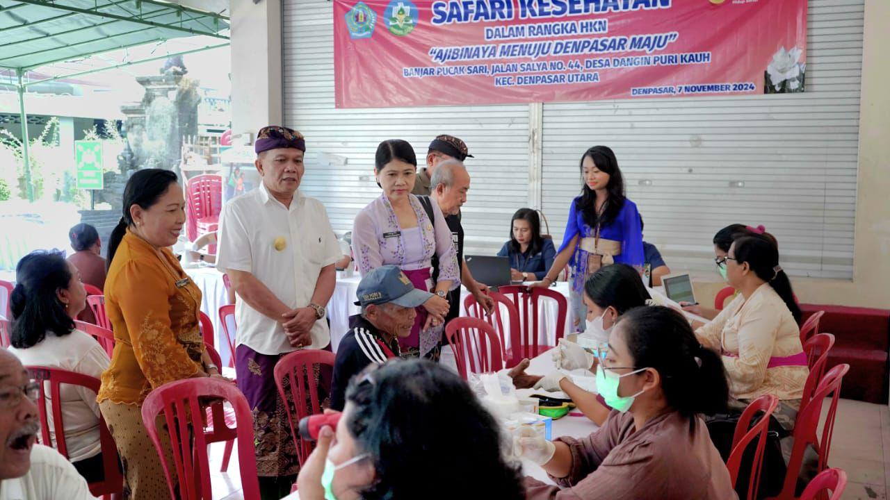 Pelaksanaan safari kesehatan rangkaian Peringatan Hari Kesehatan Nasional (HKN) ke-60 kembali digelar Pemkot Denpasar. Pada Kamis (7/11), safari kesehatan menyasar warga di lingkungan Banjar Pucak Sari, Desa Dangin Puri Kauh, Kecamatan Denpasar Utara, yang ditinjau langsung Pjs. Walikota Denpasar I Dewa Gede Mahendra Putra.