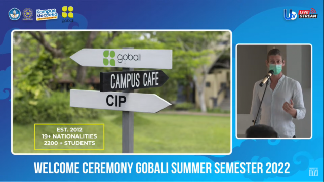 Program GoBali Fakultas Pariwisata Universitas Udayana kembali mengadakan Welcome Ceremony Summer Semester 2022 yang dilaksanakan secara hybrid di Gedung GoBali Fakultas Pariwisata Kampus Jimbaran, Jumat (1/4/2022). Acara ini diikuti oleh 40 mahasiswa yang berasal dari Jerman, Spanyol, Belanda, serta Austria. Terdapat 37 mahasiswa program sarjana dan 3 mahasiswa program magister. Hadir pada kesempatan tersebut sebanyak 24 mahasiswa asing secara luring, dan sisanya bergabung secara daring.