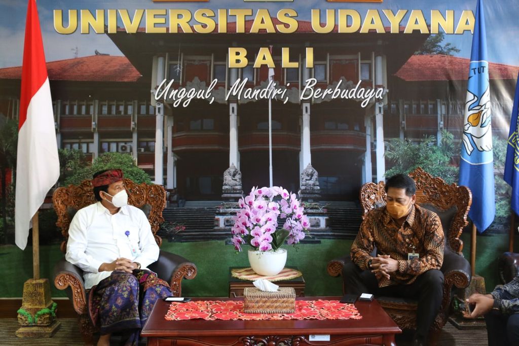 Rektor Unud Prof. I Nyoman Gde Antara didampingi Wakil Rektor Bidang Akademik menerima audiensi Pemimpin dan Wakil Pemimpin Divisi Hubungan Kelembagaan-2 serta Head of Regional BNI Kantor Wilayah Bali, NTB dan NTT beserta jajaran bertempat di Gedung Rektorat Kampus Jimbaran, Kamis (30/9/2021).