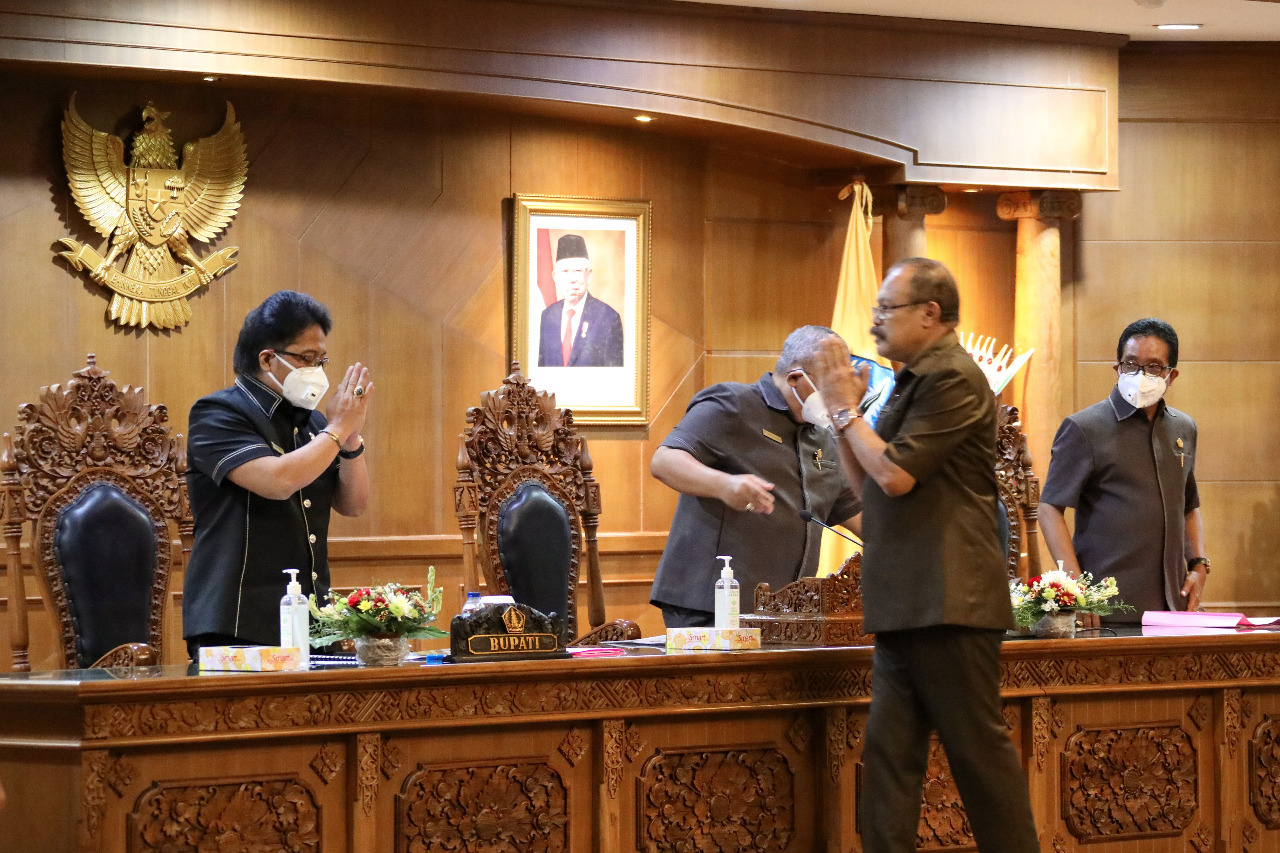 Sidang paripurna yang dipimpin oleh Ketua DPRD Badung Putu Parwata bersama Wakil Ketua II Made Sunarta tersebut turut dihadiri oleh jajaran Forkopimda Badung, Wakil Bupati Ketut Suiasa, Sekda Wayan Adi Arnawa beserta kepala OPD di jajaran Pemkab Badung.