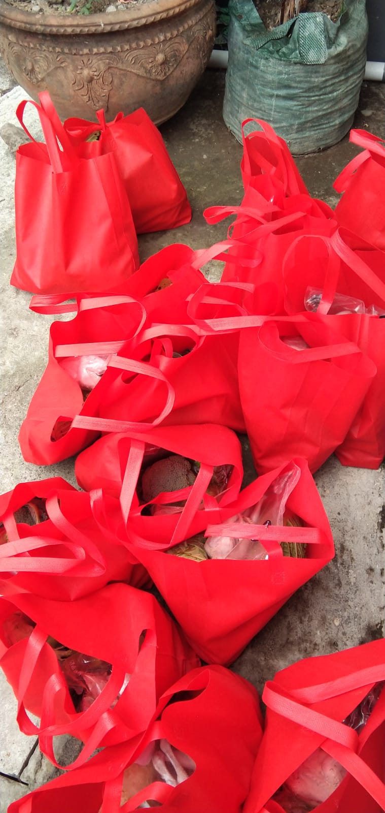 SAYUR DAN AYAM – Paket bantuan sayur-mayur dan ayam sebelum dibagikan kepada warga terdampak covid-19, Minggu (1/8/2021).