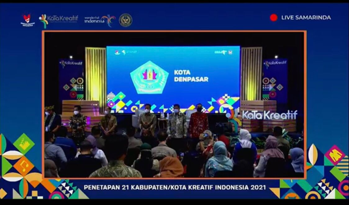 Kota Denpasar ditetapkan sebagai Kota Kreatif terkait pariwisata budaya sinergi ekonomi kreatif oleh Badan Ekonomi Kreatif (Bekraf) Indonesia secara virtual yang digelar di Kota Samarinda, Kalimantan Timur, Selasa (30/11). Hal itu ditandai dengan penyerahan SK dan plakat oleh Menteri Pariwisata dan Ekonomi Kreatif Sandiaga Uno pada perhelatan penetapan 21 Kabupaten/Kota (Kata) Kreatif Indonesia di Kota Samarinda.