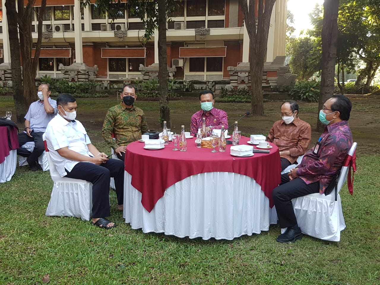 COFFEE MORNING – Sekda Provinsi Bali Dewa Made Indra didampingi sejumlah kadis dalam coffee morning dengan sejumlah wartawan, Selasa (30/6/2021).