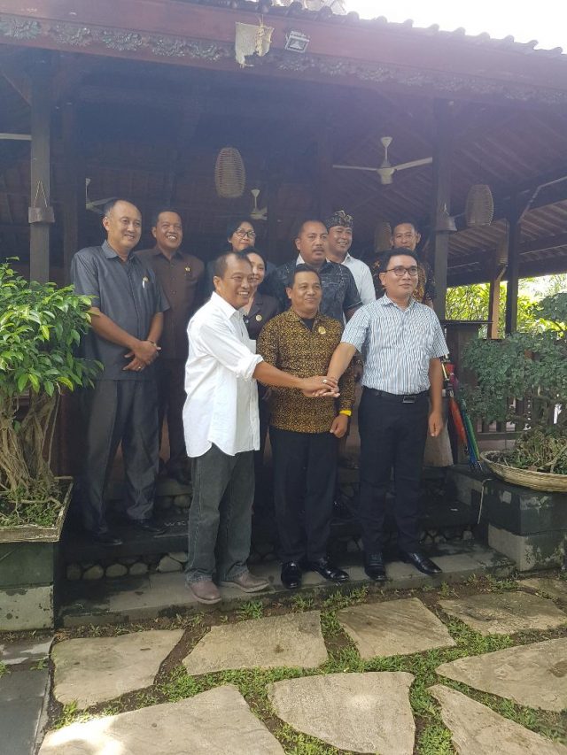 KOMUNIKASI – Putu Suyanta saat menjalin komunikasi untuk menelurkan pasangan calon di sebuah rumah makan di bilangan Dalung, beberapa waktu lalu.