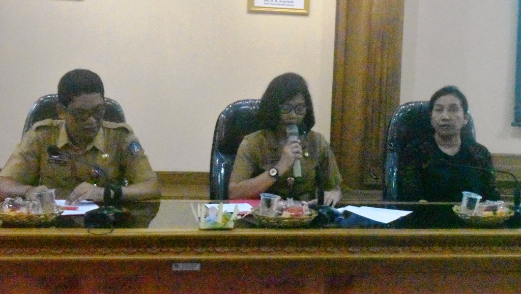 SERVIKS – Sosialisasi lintas sektor dalam rangka pelaksanaan kegiatan evaluasi pasca imunisasi kanker serviks (HPV) tahun 2019, Selasa (30/4) di Pusat Pemerintahan Mangupraja Mandala Kabupaten Badung di Mangupura.