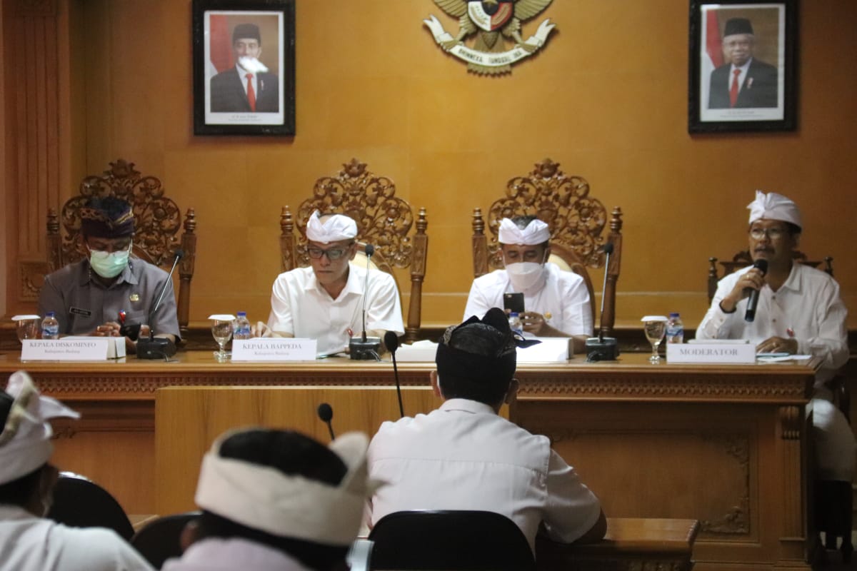 Pemerintah Kabupaten Badung melalui Badan Perencanaan Pembangunan Daerah (Bappeda) Kabupaten Badung menyelenggarakan Sosialisasi Peraturan Bupati Badung Nomor 3 tahun 2022 terkait Satu Data Daerah yang dibuka langsung Kepala Bappeda Kabupaten Badung I Made Wira Dharmajaya, bertempat di ruang pertemuan Inspektorat Kabupaten Badung, Kamis (28/7). Turut hadir Plt. Kepala Badan Pusat Statistik (BPS) Kabupaten Badung Dewa Made Suambara dan Kepala Dinas Komunikasi dan Informatika (Kominfo) Kabupaten Badung I Gusti Ngurah Jaya Saputra sekaligus menjadi narasumber.