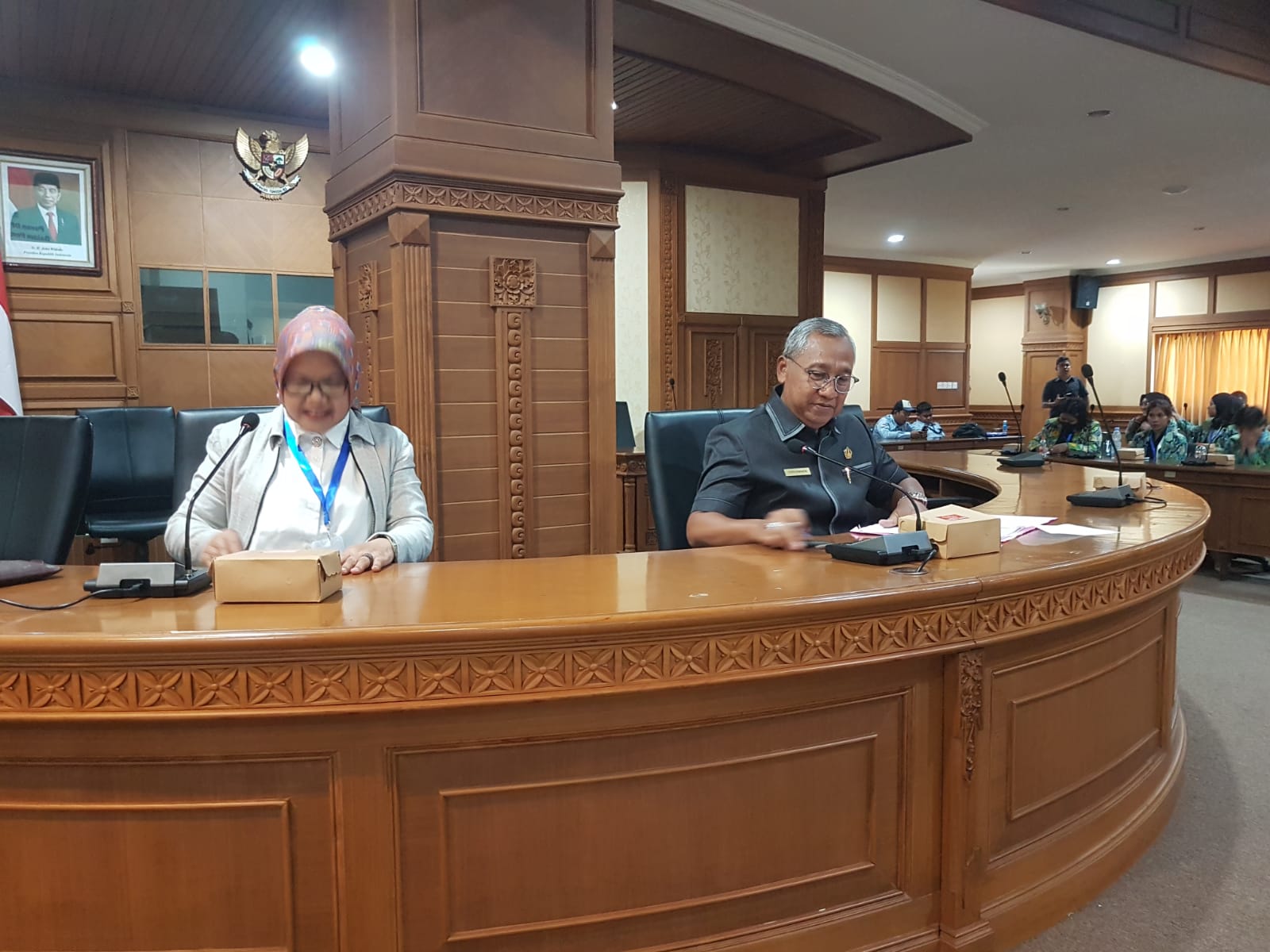Ketua DPRD Badung Putu Parwata menerima ratusan mahasiswa Fakultas Hukum (FH) Universitas Widya Mataram, Yogyakarta, Senin (7/8/2023). Para mahasiswa didampingi Wakil Dekan FH Widya Mataram Yogyakarta Condo Wasiati, SH, M.Hum dan Said Munawar, SH, MH.