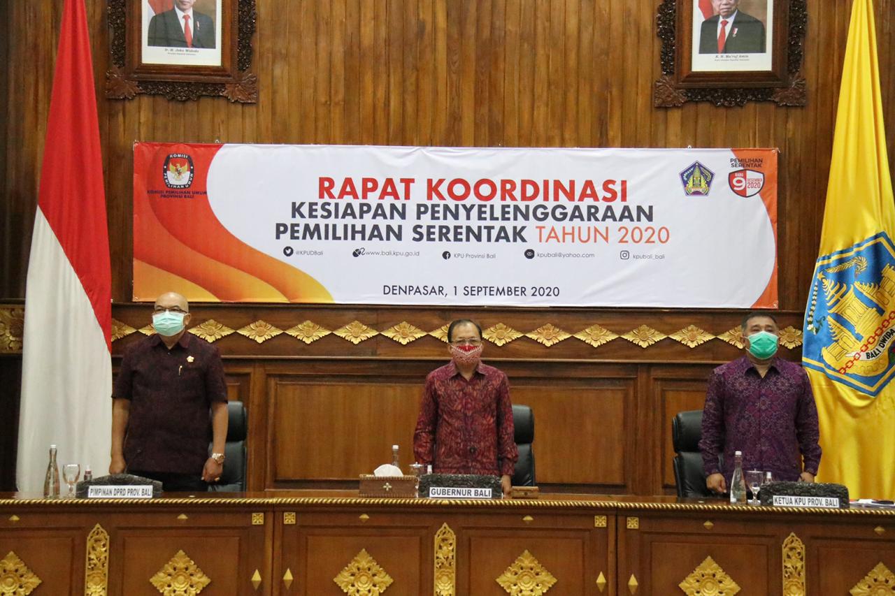Hal ini disampaikan Gubernur Koster saat memberi sambutan pada acara rapat koordinasi terkait pelaksanaan pemilihan kepala daerah serentak tahun 2020 di Gedung Wiswa Sabha Utama, Kantor Gubernur Bali, Selasa (1/9/2020).
