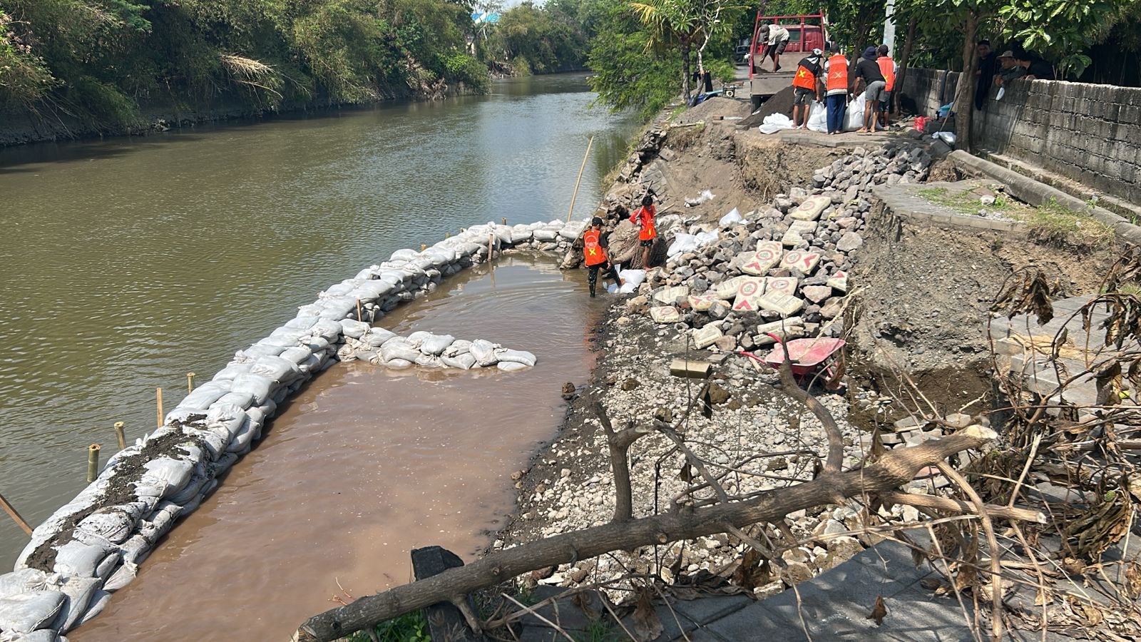 Kepala Dinas PUPR Kota Denpasar Anak Agung Ngurah Bagus Airawata didampingi Kepala Bidang Sumber Daya Air Gandhi Dananjaya Suarka menjelaskan, pemasangan kisdam menjadi metode darurat namun efektif untuk menahan laju arus air dari hulu. “Tujuan utama pemasangan kisdam ini adalah memblokir sementara aliran air, sehingga proses pembangunan kembali senderan yang jebol dapat berjalan lebih aman dan lancar,” jelasnya, Sabtu (27/9).