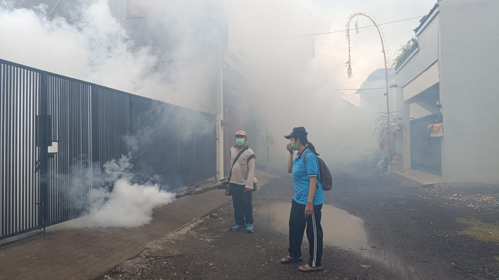 Dalam upaya menurunkan terjadinya angka kasus demam berdarah, pelaksana foging team dan tenaga Jumantik dari Dinas Kesehatan Kota gencar melakukan kegiatan foging serta pemberatasan sarang nyamuk (PSN) di seluruh wilayah Denpasar Selatan, Rabu (18/1). Kepala Puskesmas I Denpasar Selatan Dokter Wulan Tjatera mengungkapkan, kegiatan foging merupakan salah satu langkah untuk memberantas nyamuk dewasa.
