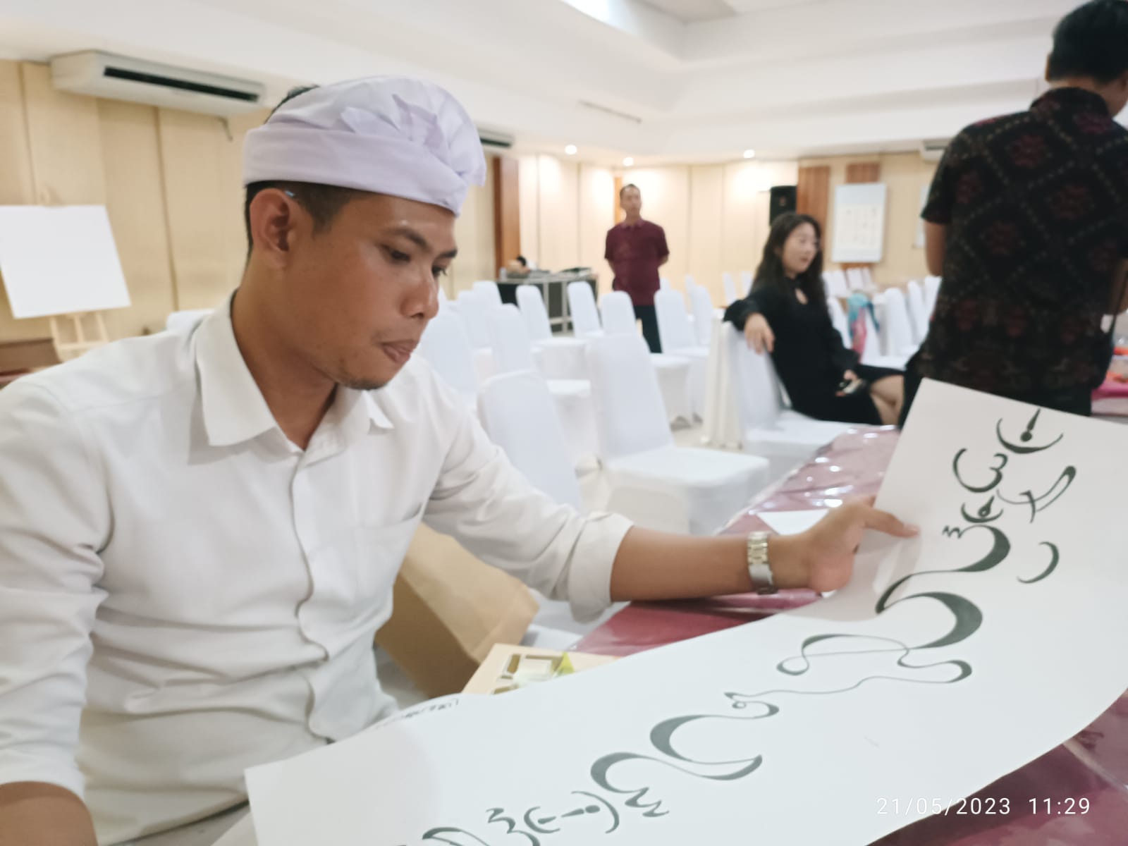 Sebaliknya, narasumber dari Bali, Dr. Drs. Ida Bagus Rai Putra, M.Hum, mengajarkan cara membuat kaligrafi beraksara Bali. Sehingga kedua pihak beda negara ini saling belajar satu sama lain. Rai Putra menyuguhkan kaligrafi rerajahan.