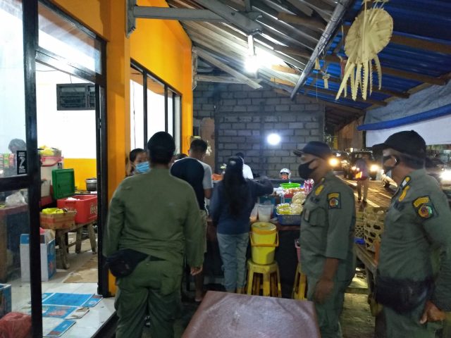 MENUTUP – Tim Yustisi menutup sejumlah usaha karena melanggar dalam PPKM level 4 pada Jumat malam (5/8).
