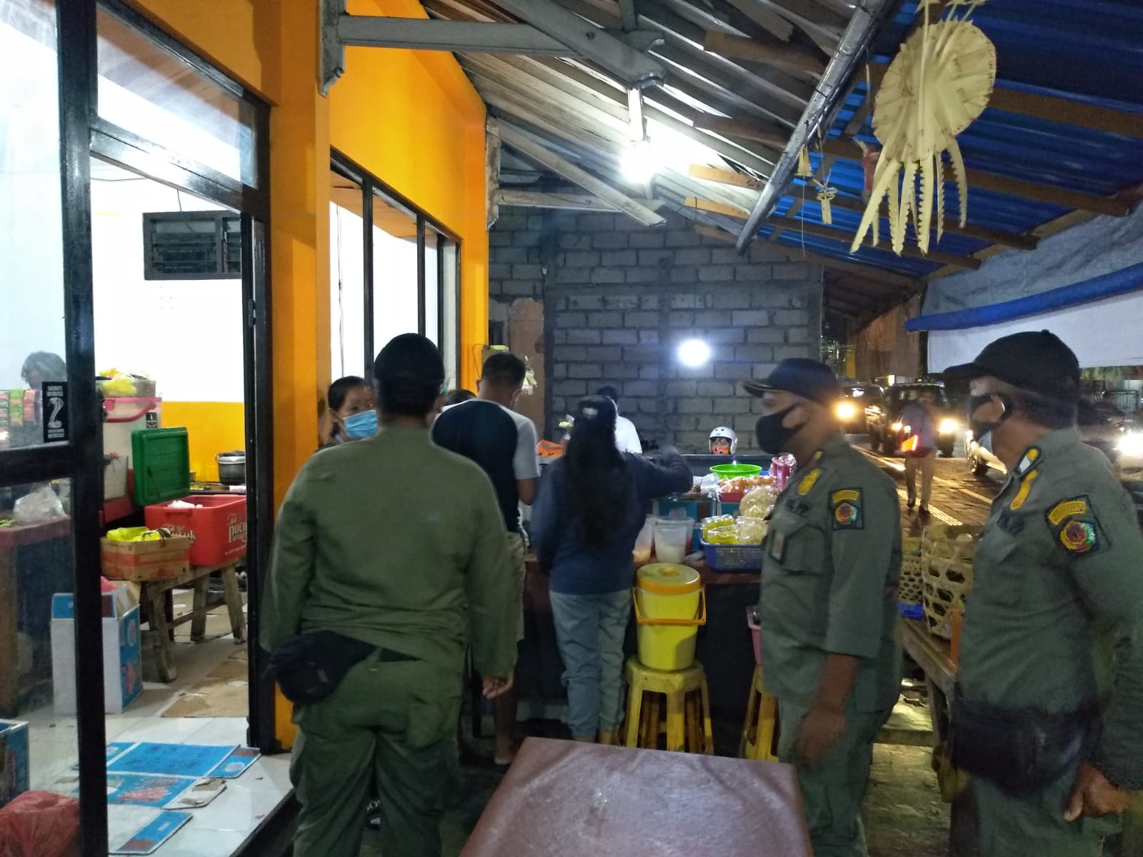 Tim Cakra Induk melaksanakan patroli pemantauan penerapan PPKM Level IV di Kota Denpasar, menemukan 2 usaha angkringan. Tim menegur dan menutup sementara 1 usaha angkringan di Jalan Mahendradata dan 1 usaha penjual nasi di Jalan Setiabudi karena melewati batas jam operasional.