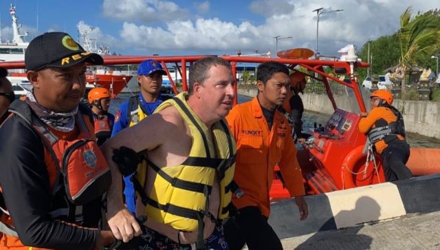 DITEMUKAN SELAMAT – Wisatawan asal Amerika Serikat Petter Picetti Falcone akhirnya ditemukan dalam kondisi selamat oleh sebuah kapal nelayan di sekitar perairan Uluwatu, Rabu (11/6/2025) pagi.