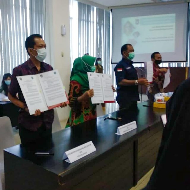 HIBAH – Penandatanganan Hibah Pinjam Pakai antara Kadisdukcapil Kota Denpasar, Dewa Gde Juli Artabrata bersama Dirjen Dukcapil, Prof. Dr Zudan Arif Fakruloh pada Jumat (10/11) lalu.