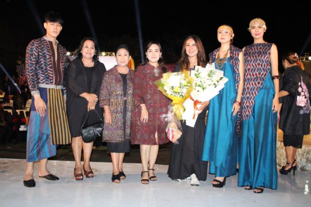 MEMUKAU – Karya desainer Kota Denpasar memukau di ajang fashion show Adiwarna Wastra Loka, yang diadakan Dekranasda Provinsi Bali, Sabtu (10/6) di Lotus Pond, kawasan Garuda Wisnu Kencana (GWK), Uluwatu.