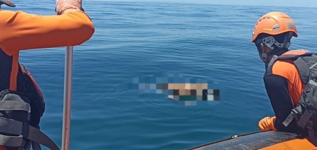 Disebutkan, tim rubber boat yang semula penyisiran ke arah barat, langsung bergeser mendekat ke lokasi dicurigai korban berada, untuk memastikan info tersebut. Ketika ditemukan posisinya tertelungkup dan terlihat menggunakan celana pendek berwarna hitam tanpa mengenakan baju.