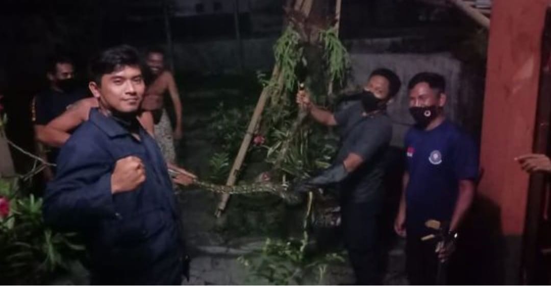 Tim Reptil Regu Pemadam Kebakaran Badan Penanggulangan Bencana Daerah (BPBD) Kota Denpasar Pos Induk menangkap ular sanca sepanjang 2 meter yang masuk ke rumah warga di Jalan Imam Bonjol, Banjar Tegal Agung, No. 3 Denpasar, pada Senin (14/3) sekitar pukul 23.00 Wita. Informasi didapat dari seorang warga bernama ibu Ayu.