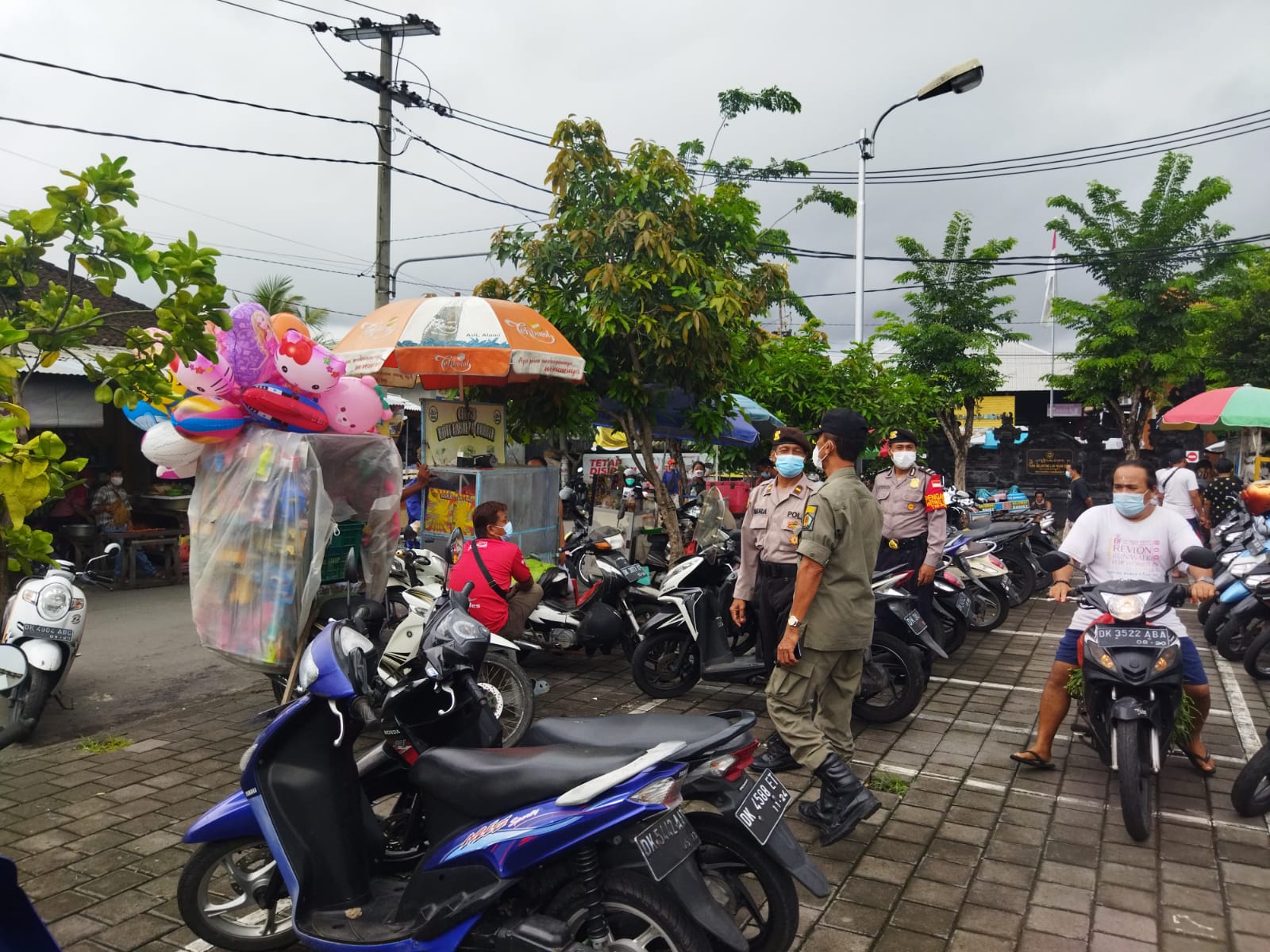 Tim Yustisi Denpasar terus gencar melakukan penertiban protokol kesehatan dalam pelaksanaan PPKM Level 2 di beberapa pasar tumpah yang ada di Kota Denpasar, Minggu (28/11). Kasatpol PP Kota Denpasar Dewa Gede Anom Sayoga mengatakan, penertiban dilakukan di pasar tumpah Jalan Gunung Kawi Denpasar dan Pasar Tumpah Jalan Kartini.
