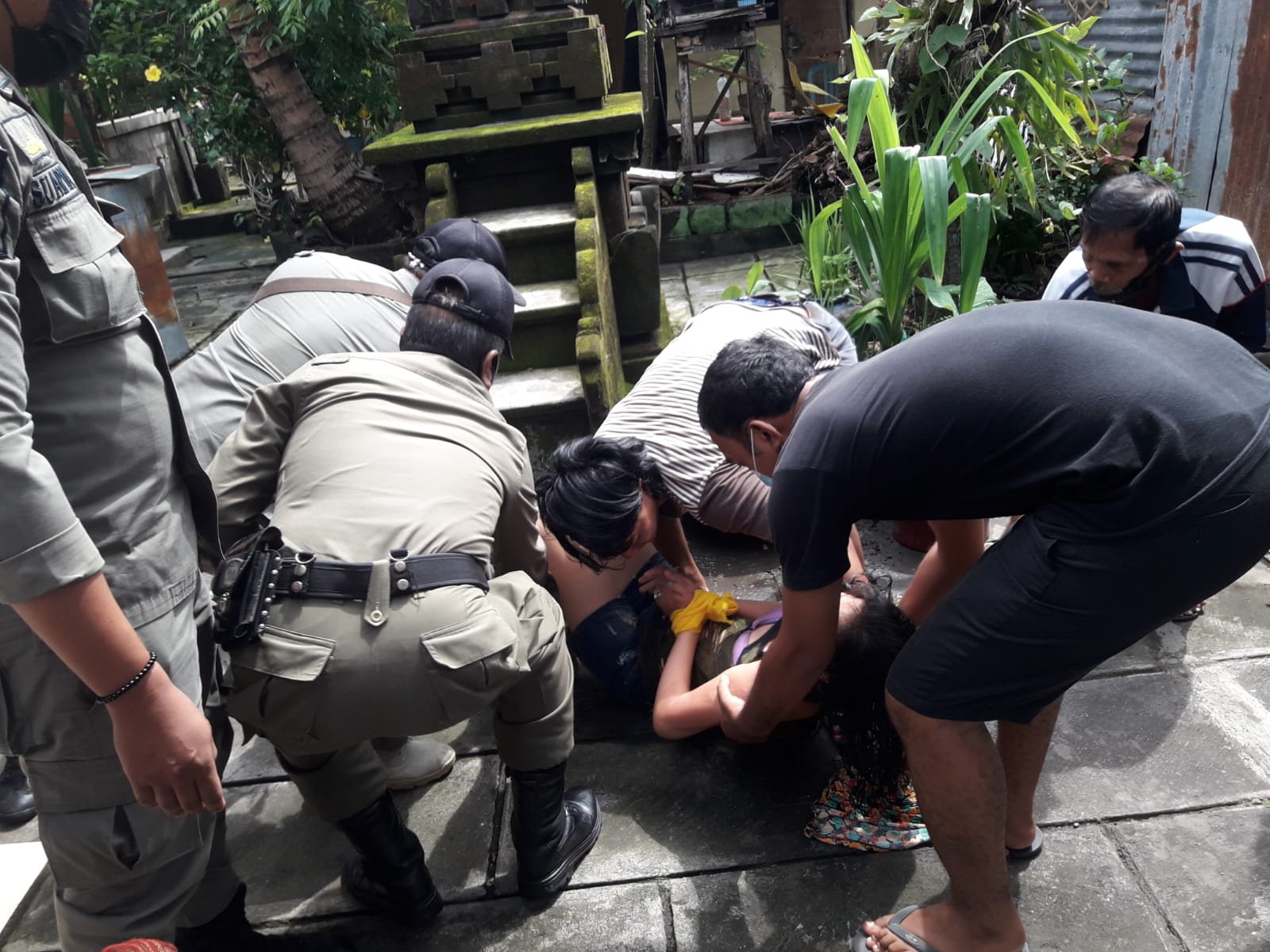 ODGJ – Tim Yustisi Denpasar mengamankan ODGJ saat penertiban prokes, Minggu (19/12).