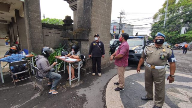 Berbagai upaya telah dilaksanakan, tak terkecuali pelaksanaan penertiban penerapan disiplin dan penegakan hukum protokol kesehatan yang digelar oleh Tim Yustisi Kota Denpasar guna menekan penyebaran penularan virus covid-19. Kegiatan dalam rangka Pemberlakuan Pembatasan Kegiatan Masyarakat (PPKM) skala mikro berbasis desa/kelurahan kali ini dilaksanakan di Jalan Raya Pemogan, Desa Pemogan, Densel, pada Selasa (8/6).