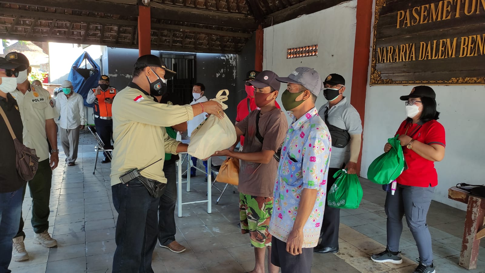 Tim Yustisi Kota Denpasar kembali melaksanakan pembagian sembako dan bingkisan di sela-sela pemantauan protokol kesehatan terkait Penerapan Pembatasan Kegiatan Masyarakat (PPKM) Level 3 di Kota Denpasar. Kegiatan ini dilaksanakan di simpang Jalan Seroja-Jalan Kemuda-Jalan Padma, Kelurahan Tonja, Denpasar Utara, Minggu (25/7) pagi.