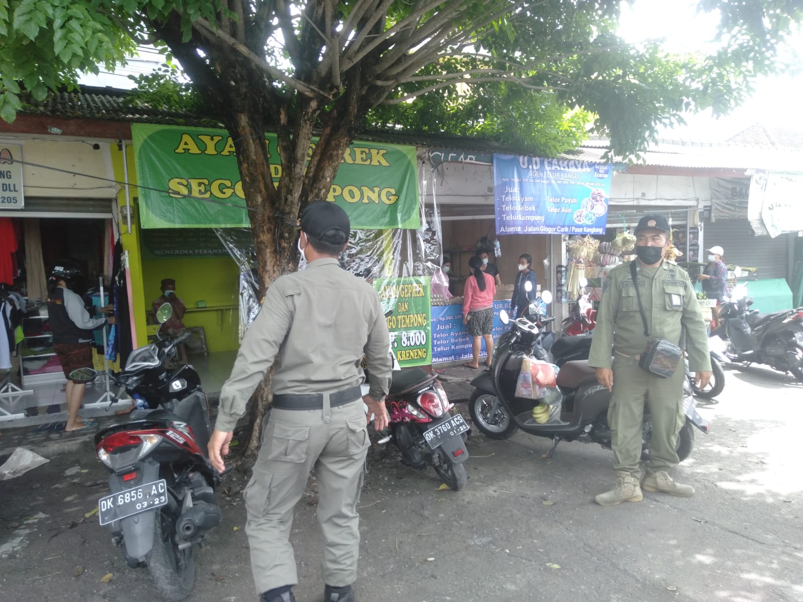 PASAR TUMPAH – Penertiban prokes di sebuah pasar tumpah di Denpasar, Senin (1/11/2021).