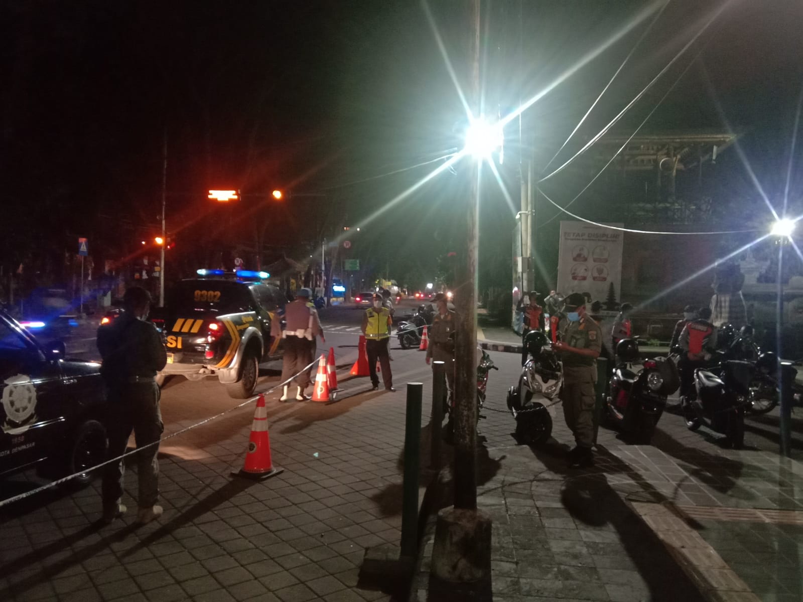 PENDISIPLINAN – Suasana pendisiplinan PPKM level 4, Senin malam (16/8/2021).