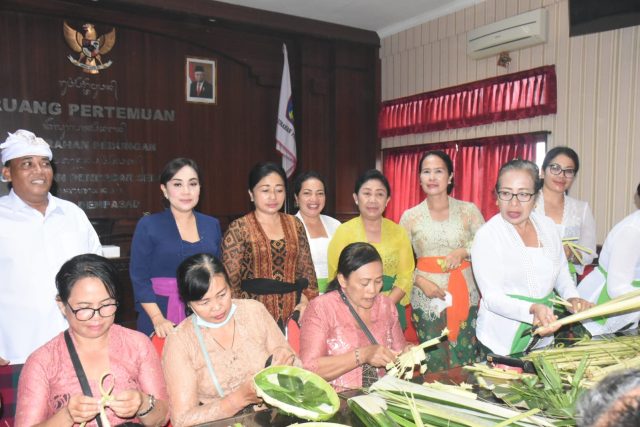 BANTEN OTONAN – WHDI Denpasar kembali menggelar pelatihan membuat banten otonan, Jumat (30/9/2022).