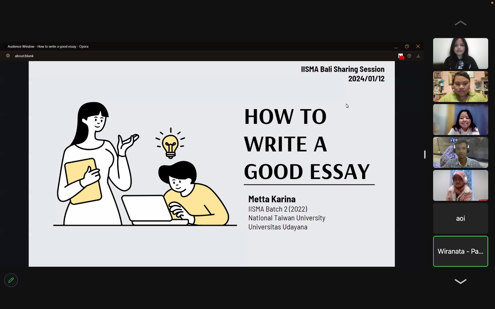 Kali ini KUI menggandeng SUN Education Group dalam pemaparan materi sesi sharing bertajuk “IELTS Recipe: Study hacks for University Seekers” secara daring melalui zoom meeting pada Jumat (12/1), sedangkan pada malam harinya volunteer awardees IISMA Unud tahun 2021-2023 mengadakan acara sesi mentoring bagi para pejuang IISMA.