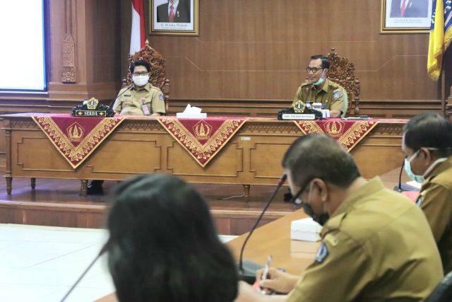 TATAP MUKA – Sekda Adi Arnawa bertatap muka dengan Kepala BPP dan UPT Pertanian se-Kabupaten Badung bertempat di Kriya Gosana Puspem Badung, Selasa (16/6).