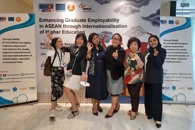 Tingkatkan kerja sana antara EU dengan ASEAN untuk peningkatan kapasitas dalam ruang lingkup pendidikan tinggi di ASEAN, Koordinator Kantor Urusan Internasional (KUI) Dr. Eng. Ir. Ni Nyoman Pujianiki, ST., MT., M.Eng., IPM menghadiri Seminar Nasional bertajuk “Enhancing Graduate Employability in ASEAN through Internationalisation of Higher Education” yang merupakan hasil kerja sama antara Universitas Bina Nusantara dengan European Union Support to Higher Education in the Asean Region (EU-SHARE) pada Selasa (22/11/2022) bertempat di Hotel Le Meridien, Jakarta.
