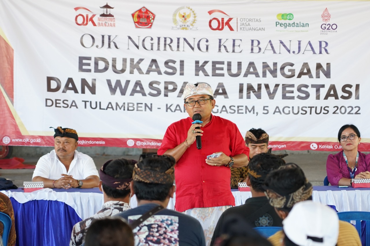Dalam kegiatan OJK Ngiring ke Banjar Desa Tulamben, anggota DPR Komisi XI, I Gusti Agung Rai Wirajaya, S.E., M.M. menyampaikan informasi terkait dengan pengenalan OJK sebagai lembaga negara yang dibentuk melalui UU Nomor 21 tahun 2011 tentang Otoritas Jasa Keuangan. Selain berwenang untuk melakukan pengaturan dan pengawasan di sektor perbankan, pasar modal dan industri keuangan non-bank (IKNB), OJK hadir dalam rangka memberikan perlindungan kepada konsumen dan masyarakat, termasuk di dalamnya adalah edukasi dan sosialisasi, pencegahan, serta pembelaan hukum jika diperlukan. Selain itu masyarakat juga terus diimbau untuk dapat bijak dalam memilih tempat untuk berinvestasi untuk menghindari kerugian di masa depan.