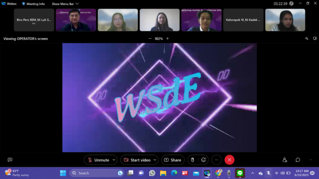 Badan Semi Otonom Societe de Equilibrium Fakultas Ekonomi dan Bisnis Universitas Udayana (BSO SdE FEB Unud) telah menggelar kegiatan Workshop Societe de Equilibrium (WSDE) tahun 2023 yang berlangsung selama dua hari, yakni pada Sabtu (10/6) dan Minggu (11/6) secara online melalui Cisco Webex Meetings. Tema yang diusung pada WSDE tahun ini yaitu “Wujudkan Perubahan melalui Kreasi dan Inovasi Program Kreativitas Mahasiswa” yang berfokus untuk memberikan informasi dan pengetahuan kepada mahasiswa FEB Unud yang berkaitan dengan PKM, membangkitkan minat dan kreativitas mahasiswa dalam menulis PKM. Kegiatan WSDE ini diikuti oleh 20 tim dengan 59 orang peserta, yang terdiri dari angkatan 2022 sebanyak 56 peserta dan angkatan 2020 sebanyak 3 peserta.