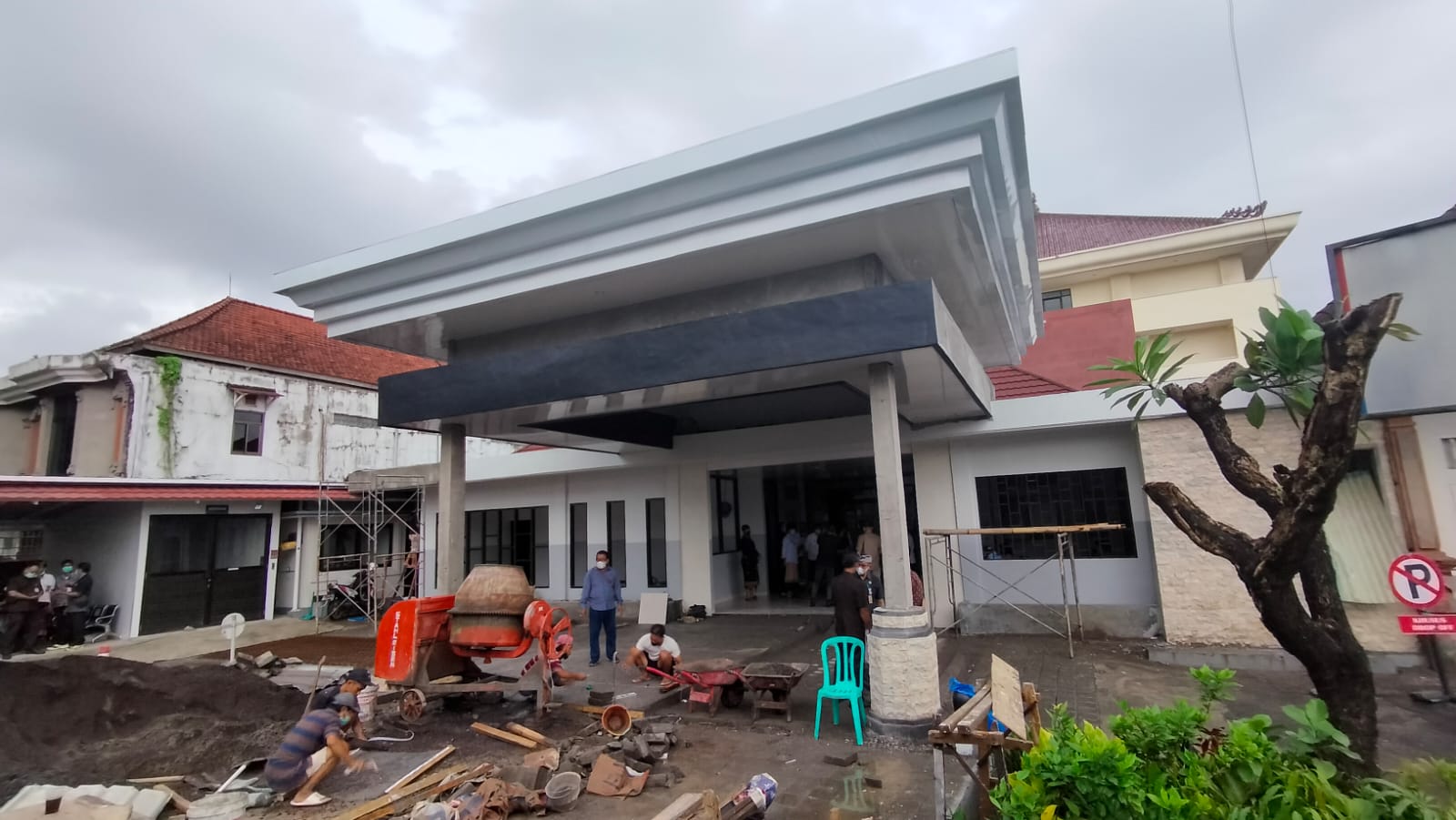 RENOVASI – Suasana pengerjaan renovasi IGD RSUD Wangaya Kota Denpasar, Kamis (6/10).