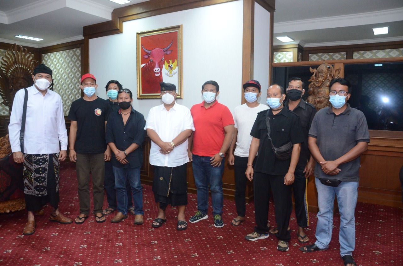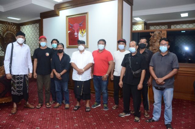 PETERNAK BABI – Ketua DPRD Badung berfoto bersama para peternak babi dari 5 kecamatan di Badung usai audiensi, Selasa (16/2/2021).