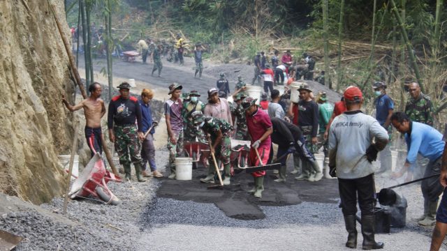 TMMD – Pembukaan jalan baru merupakan salah satu kegiatan dalam Tentara Manunggal Membangun Desa (TMMD) ke-112.