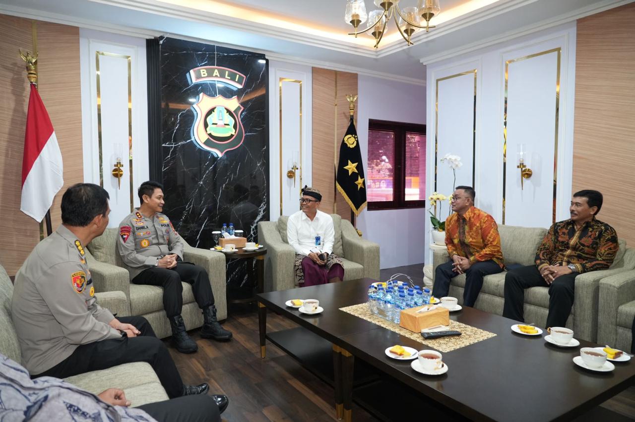 DITERIMA KAPOLDA – GM PT PLN (Persero) UID Bali I Gede Agung Sindu Putra (kemeja Putih) diterima Kapolda Bali Irjen Pol. Daniel Adityajaya saat audensi terkait dukungan PLN pada penyelenggaraan event internasional di Bali.