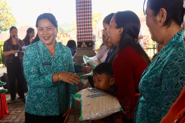 BERBAKTI DAN BERBAGISekretaris I TP PKK Provinsi Bali Ny. Seniasih Giri Prasta melaksanakan aksi sosial “Berbakti dan Berbagi” serangkaian peringatan Hari Kesatuan Gerak PKK ke-53 Tingkat Provinsi Bali Tahun 2025, Rabu (30/4).
